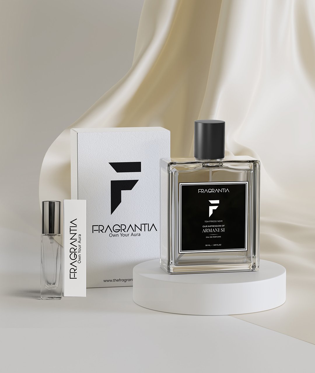 Indulge in sophistication with TEMPTRESS NOIR – Inspired by Armani Si, a fragrance crafted for the confident, passionate woman. The scent opens with juicy blackcurrant nectar, flowing into a floral heart of rose de mai and freesia, before settling into a warm, sensual base of patchouli, vanilla, and musky undertones.